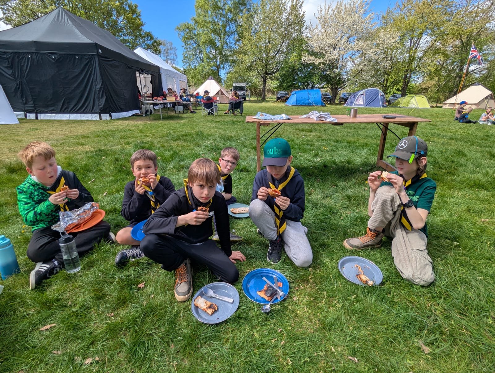 Sunday morning was a bit cold, but breakfast fixed that. We had pancakes with chocolate spread and syrup — delicious! After breakfast we did lots of mini games and challenges at different bases. Then it was time to pack up camp and head home.